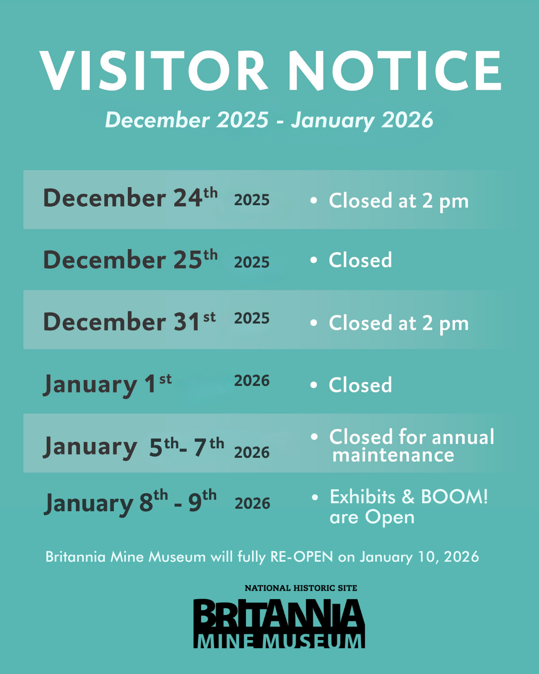 To help you plan your visit, we've created a helpful walkthrough video that guides you through what to expect when you arrive at the Britannia Mine Museum. From parking to getting to your tour on time this video will ensure you’re ready to make the most of your visit!