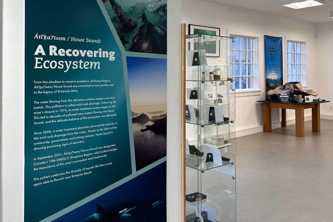 Britannia Mine’s successful search for valuable minerals allowed the company to thrive, but it also had a far-reaching impact on the surrounding environment. In the main portion of the lab, graphics, specimens and multimedia displays examine the chemical process known as acid rock drainage, and the ways modern remediation is restoring biodiversity to Britannia’s waters.